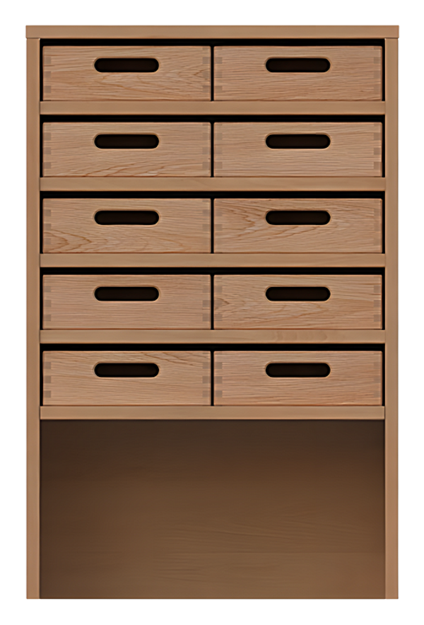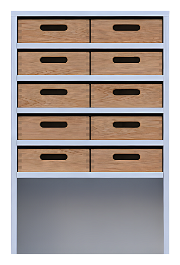 Korpusschrank offene Sockelnische, 10 Materialkästen