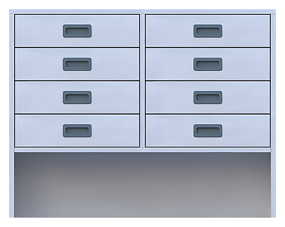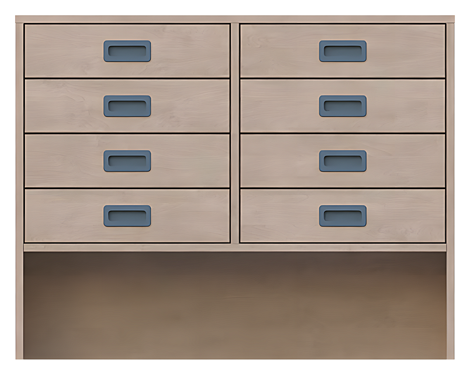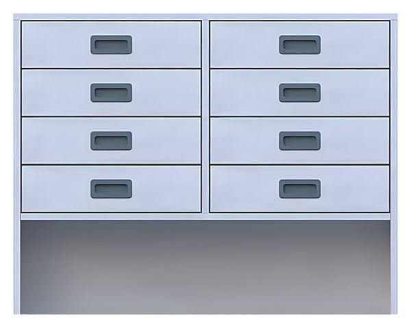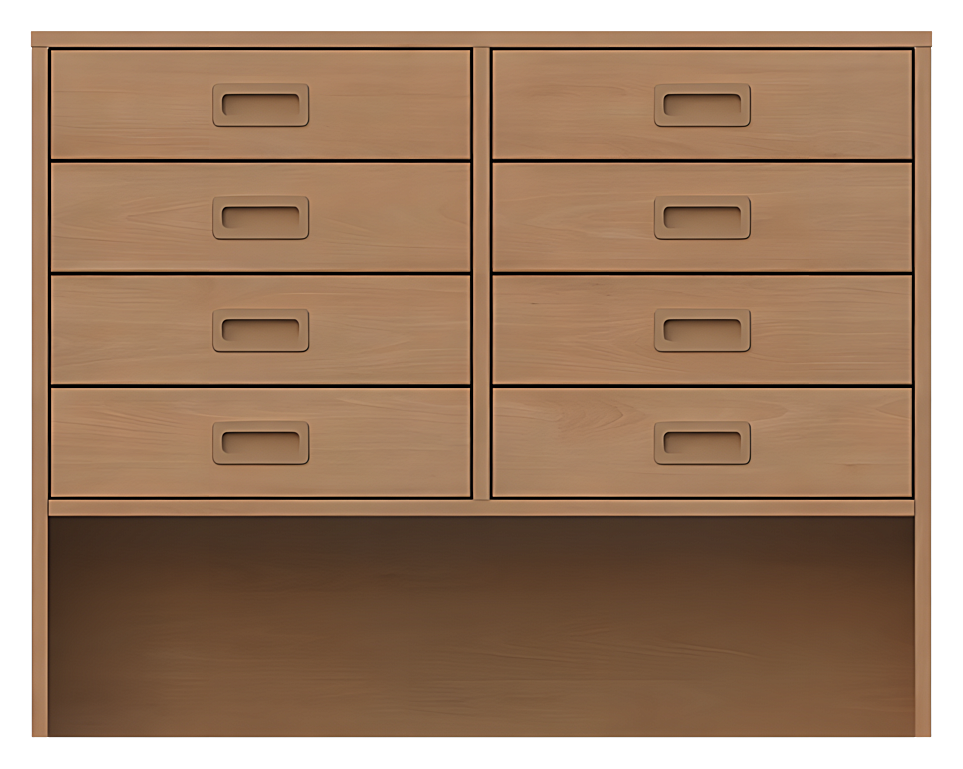 Korpusschrank, offene Sockelnische, 8 Schubkästen