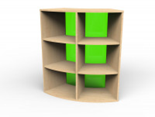 Sechstelkreisschrank H= 119,1 cm Außenradius ca. 102 cm Innenradius ca. 63 cm Gesamttiefe 40 cm Fachinnenmaß. BxHxT ca. 48,2 (28,7) x 34,1 x 37,6 cm Acrylwand im Innenradius mit 6 offenen Fächern