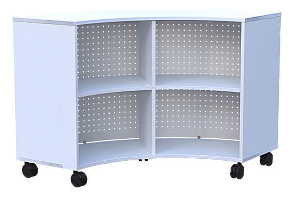 Viertelkreisschrank mit4 offenen Fächern, Lochblech Außenradius, Höhe 83,1 cm