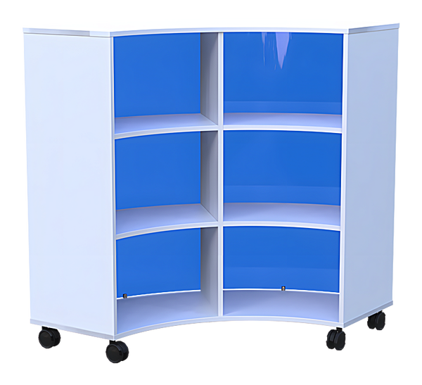 Viertelkreisschrank mit 6 offenen Fächern, Acrylglas Außenradius, Höhe 119,1 cm